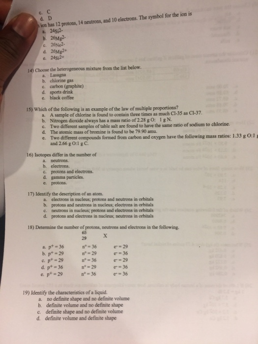 Therefore net charge 12-10 2 2 units of positive charge. Number of neutrons 14. Sports drink e black coffee Which of the following is an example of the law of multiple proportions.